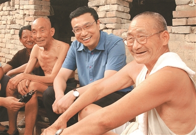 2003年8月8日,李克强同志在河南省新乡市调研。这是李克强同志在原阳县桥北乡马庄村与村民亲切交谈。 新华社发(郭宇 摄)