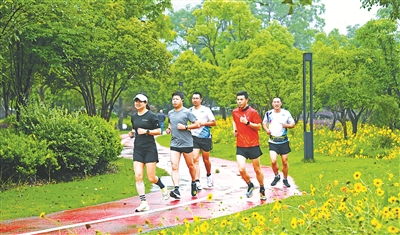 图为5月29日,路跑爱好者在浙江省台州市仙居县永安溪生态绿道上晨跑。 (图片来源:视觉中国)