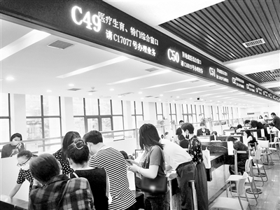 衡阳市医保局优化审批流程,精减审批材料,压缩审批时限,让群众一件事一次办。图为群众在市政务服务中心医保特殊病种门诊专窗办理业务。 李建平 摄
