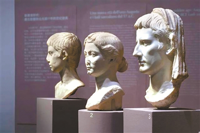 图③为“意大利之源——古罗马文明展”展品之一戴头巾的奥古斯都头像(右)。奥古斯都,即古罗马帝国的开创者屋大维,他开创了相对安定的政治局面,为古罗马帝国初期的繁荣打下基础。(资料图片)