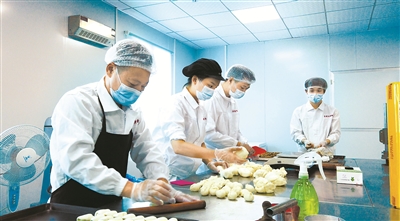 8月下旬,福建晋江一家食品企业在制作平价月饼。 本报记者 瞿芃 摄