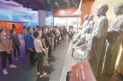 党史学习教育开展以来,全国各地党员干部群众纷纷来到位于浙江嘉兴的南湖革命纪念馆参观学习,瞻仰南湖红船,体悟伟大建党精神。(图片来源:人民视觉)