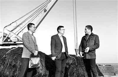 图为董旭(中)正在某渔港码头收集涉黑涉恶腐败和“保护伞”问题线索。 高頔 摄