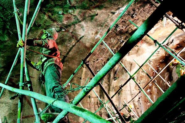 在挖掘隧道的工序中,他们走在团队前列。身处粉尘多、噪音大的工作环境,手持沉重的风枪机,在岩壁上布设凿眼,精确装好炸药,为实施爆破打下良好基础。