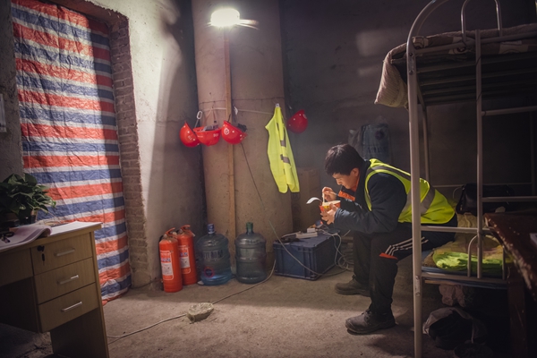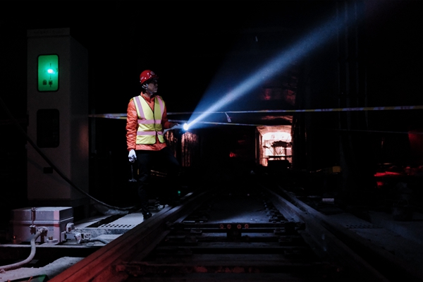 党员小胡是最早驻扎到环境艰苦的错埠岭车站的地铁人之一。地下环境湿冷,即使在炎热夏季也需穿着厚重的棉服御寒。动调阶段,他每天清晨就要在隧道内巡视并进行清场作业,为调试列车提供安全的运行环境。