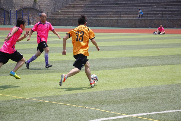 脱下厚重的工作服,他们是一群充满活力、蓬勃朝气的小伙子。驰骋在绿茵场上,尽情地挥洒着青春的汗水。