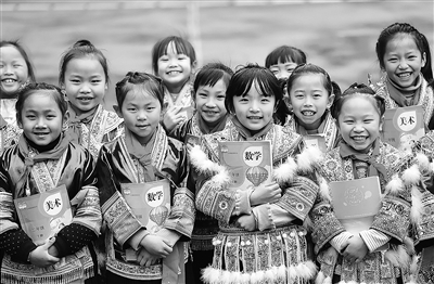 近年来,广西把教育扶贫作为阻断贫困代际传递的治本之策,不断补齐教育短板。图为广西融水苗族自治县杆洞乡中心小学的孩子们喜得新书。新华社记者 黄孝邦 摄