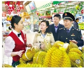 图②:江苏省盐城市大丰区纪委监委针对违规购买发放节日福利问题,联合执法部门深入百货超市、特产礼品店等开展检查。图为检查组向超市管理人员了解相关情况。茆昊 摄