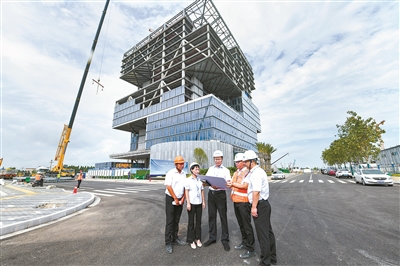 刘名松案发后,海口市纪委监委进一步强化工程招投标、土地利用等领域监督执纪工作,围绕近期自贸港重点建设项目开展精准监督。图为海口市纪检监察干部走进海南国际能源交易中心项目现场开展监督检查。 苏弼坤 摄