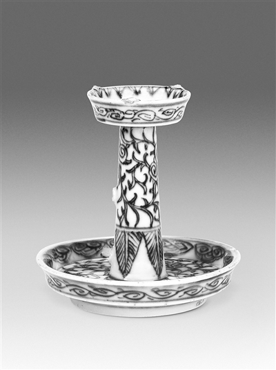 “小白礁1号”出水的清景德镇窑青花缠枝花卉纹瓷灯盏。