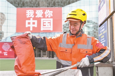 9月30日清晨,在吉林省长春市朝阳区红旗街与同德路交汇处,环卫工人廉士微仍然在坚守岗位。新华社记者 张楠 摄