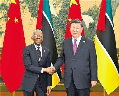 10月19日晚,国家主席习近平在北京人民大会堂会见来华出席第三届“一带一路”国际合作高峰论坛的莫桑比克总理马莱阿内。新华社记者 殷博古 摄