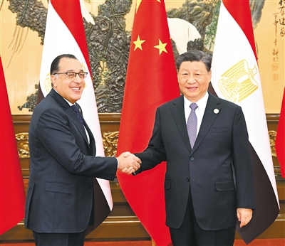 10月19日上午,国家主席习近平在北京人民大会堂会见来华出席第三届“一带一路”国际合作高峰论坛的埃及总理马德布利。新华社记者 申宏 摄