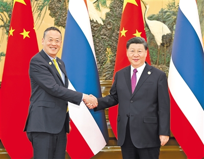 10月19日下午,国家主席习近平在北京人民大会堂会见来华出席第三届“一带一路”国际合作高峰论坛并进行正式访问的泰国总理赛塔。新华社记者 黄敬文 摄