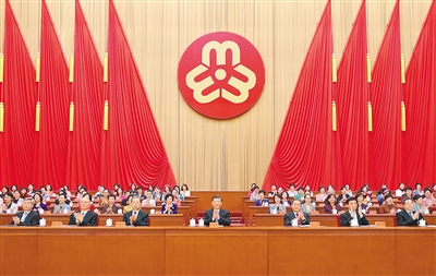 10月23日,中国妇女第十三次全国代表大会在北京人民大会堂开幕。习近平、李强、赵乐际、王沪宁、蔡奇、丁薛祥、李希等在主席台就座,祝贺大会召开。 新华社记者 姚大伟 摄